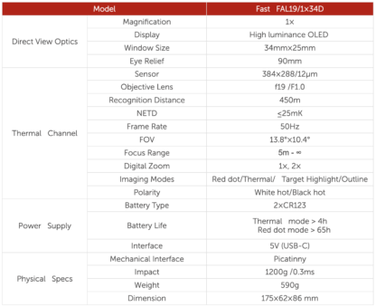 Час роботи: Тепловізійний режим > 4год, Коліматор > 65год